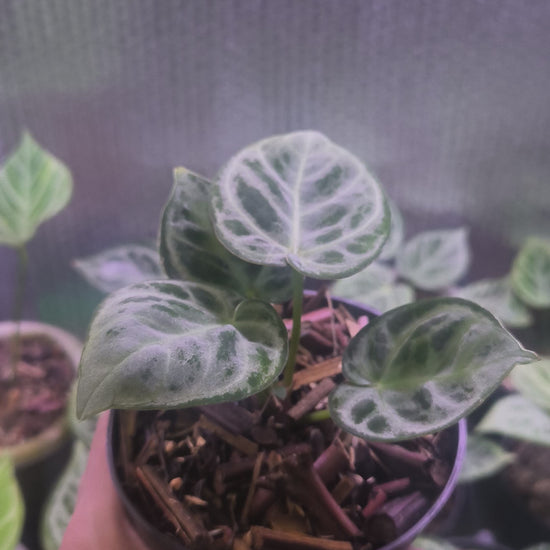 Botanical: Anthurium ‘Dorayaki Silver’ (crystallinum-type jewel)