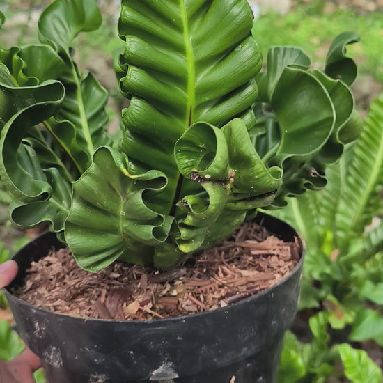 Asplenium nidus is a lush, rosette-forming fern with arching, strap-like fronds that bring instant tropical texture. It thrives in medium–bright, filtered light (no harsh sun), high humidity (60–80%), and 18–30 °C. Keep the mix evenly moist—never bone-dry or waterlogged—and water the soil, not the crown, to avoid rot. Use a rich, airy, moisture-retentive mix. Light, monthly feeding in active growth. Great for bathrooms and shelves. Non-toxic and beginner friendly.