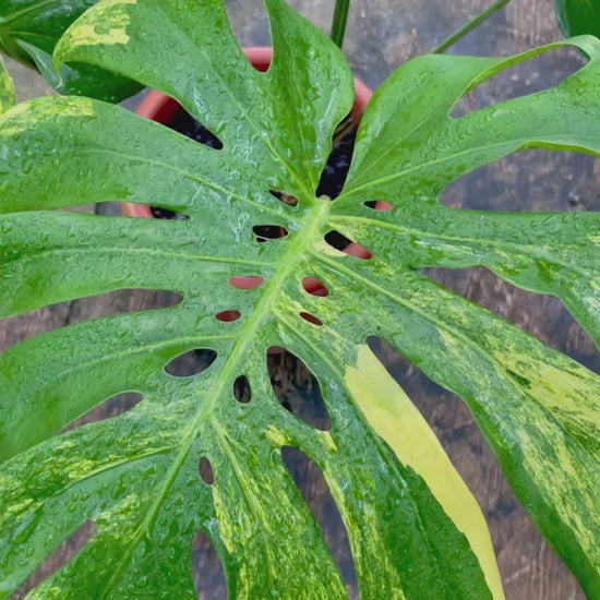 Monstera deliciosa ‘Yellow Marlyn’ is a collector-grade variegated Monstera with lemon-yellow to cream marbling and fenestrations as it matures. Keep in bright, filtered light, water when the top 2–4 cm dries, and aim for 60–80% humidity. Best in a chunky aroid mix and trained on a pole for larger leaves. Moderate growth; intermediate care. Packed securely (typically bare-root in moist sphagnum).