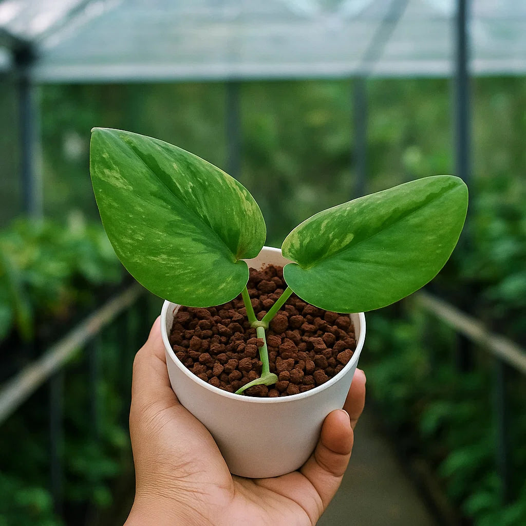 Scindapsus ‘Silver Knight’ is a pictus-type vine with satin, silver-washed leaves edged in soft olive green. Thrive it in bright, filtered light (tolerates medium), water when the top 2–3 cm dries, and keep 18–30 °C with 50–70% humidity (higher boosts growth). Use a well-draining, chunky aroid mix and let it trail from a basket or climb a pole for larger leaves and tighter internodes. Easy care, moderate growth. Securely packed for shipping (typically bare-root in moist sphagnum).
